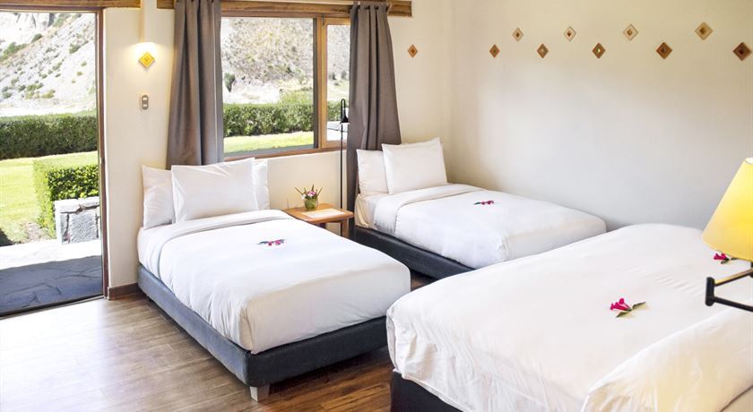 Habitacion con 4 camas de plaza y media, normalmente la acomodacion es para 2 adultos y 2 niños, son habitaciones familiares que cuentan con baño privado, ducha, cafa fuerte, calefaccion.