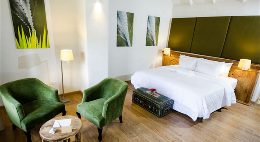 Habitacion Adobe Junior Suite Matrimonial, cuenta con cama King Size, baño amplio, recibidor, terraza, frigobar, zona de infusiones.